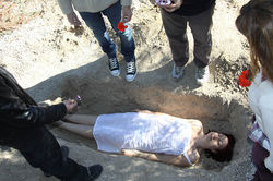 Here is a selection of photographs taken during an act of Psychomagic recommended by Jodorowsky to overcome the fear of dying. Death, burial, letters of farewell from friends and relatives, everything is recreated for the confrontation to that terrible fear.